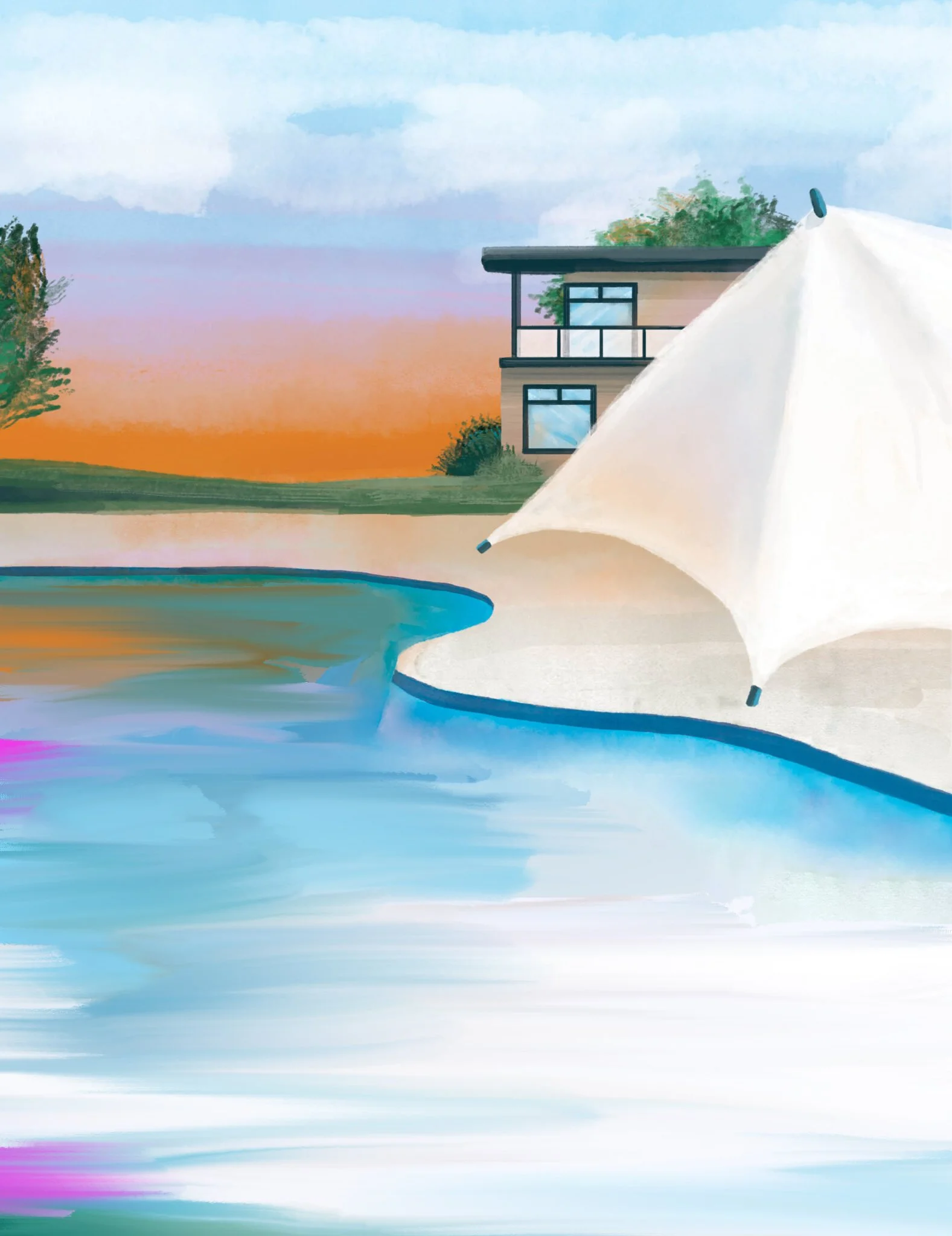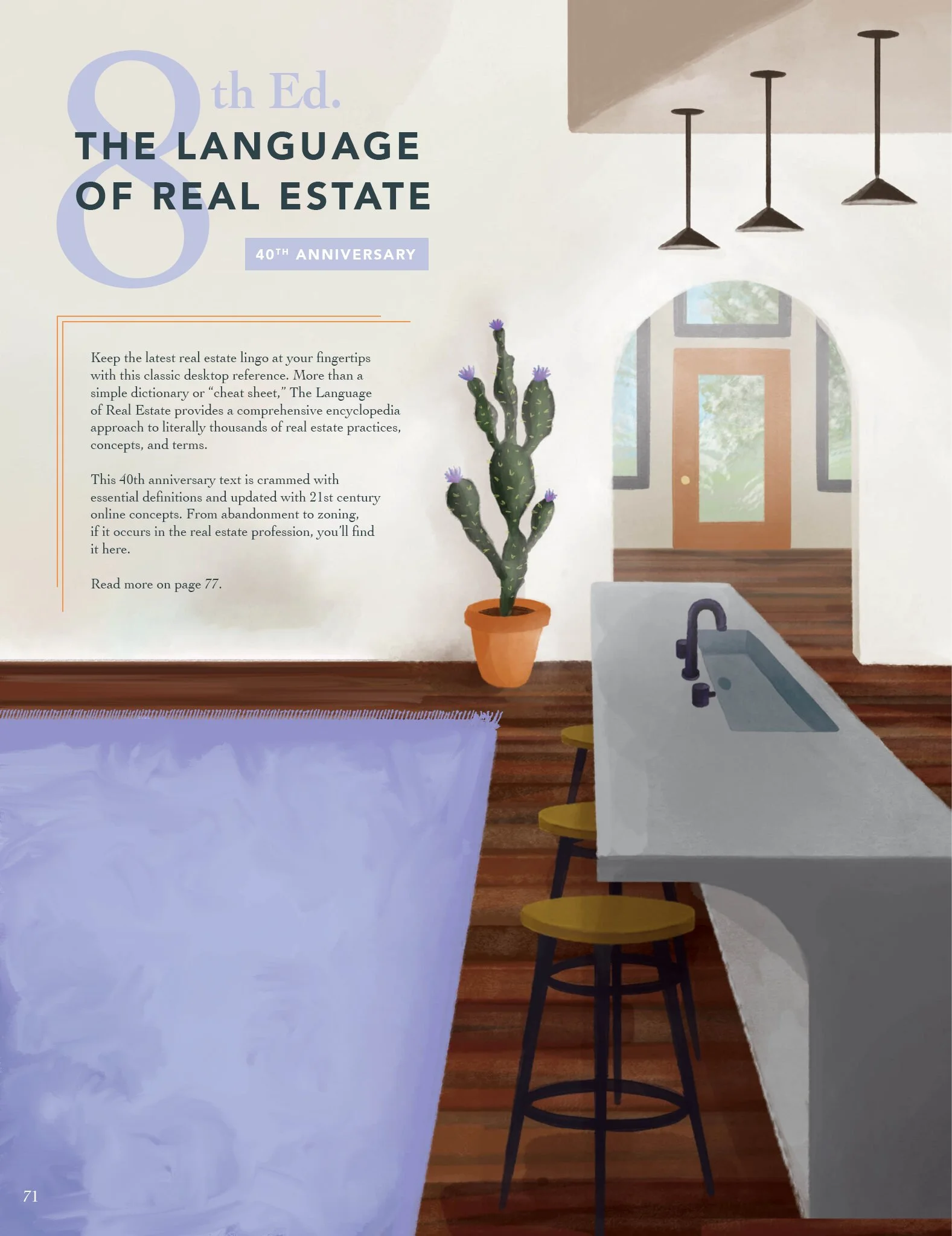 My role: The annual catalog is segmented into nine real estate sections, each with a full-page divider denoting the section. For the 2020 theme, custom digital illustrations of modern interior and exterior designs with painterly qualities was chosen for these divider sections.