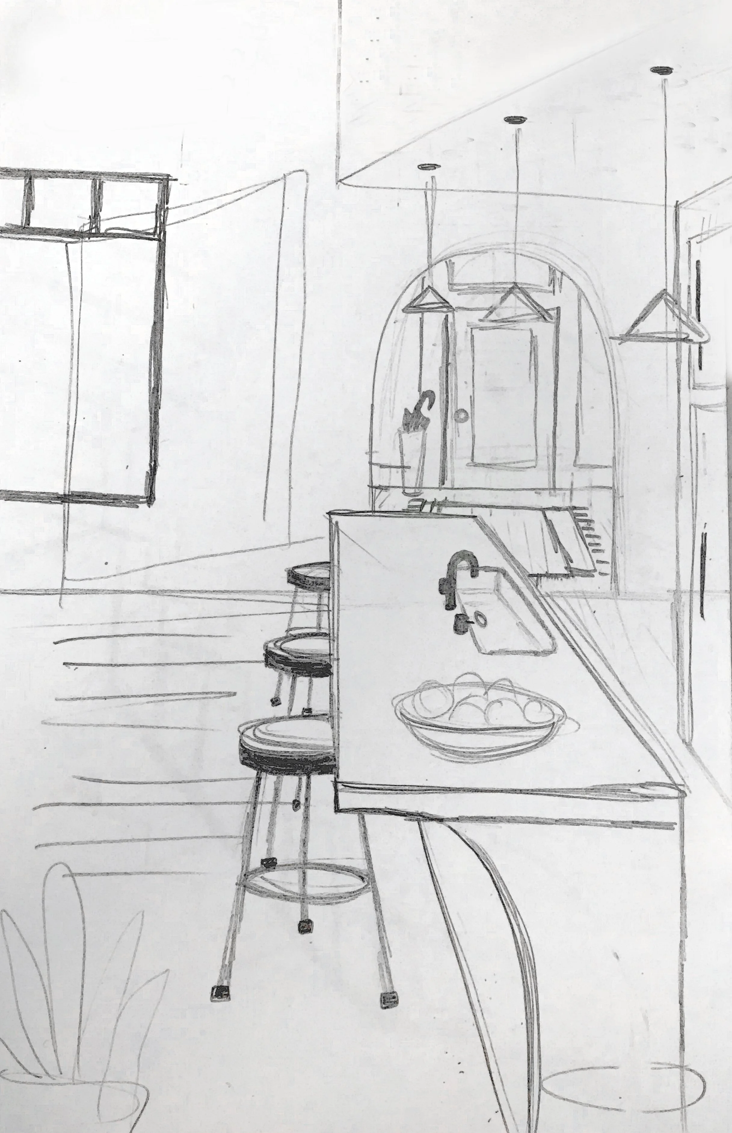 After reference photos were chosen and approved by the creative team, I drew rough sketches on paper that would be used as the base for my digital illustrations.